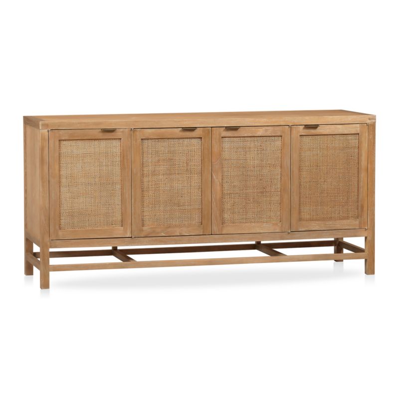 This picture is my inspiration but a different color! This one at Crate and Barrel Retails for $1500! You see what I love about this tv stand is that the screens are fabric so the remote control can still do a signal to your devices within and it wouldn't look ugly! I am going to cute the in lays of the wood and do a fabric. Hopefully it will turn out nice, if not I will have only wasted $14 because I already have a paint that I am going to use! I'll take more pictures as I am still working on this beauty!